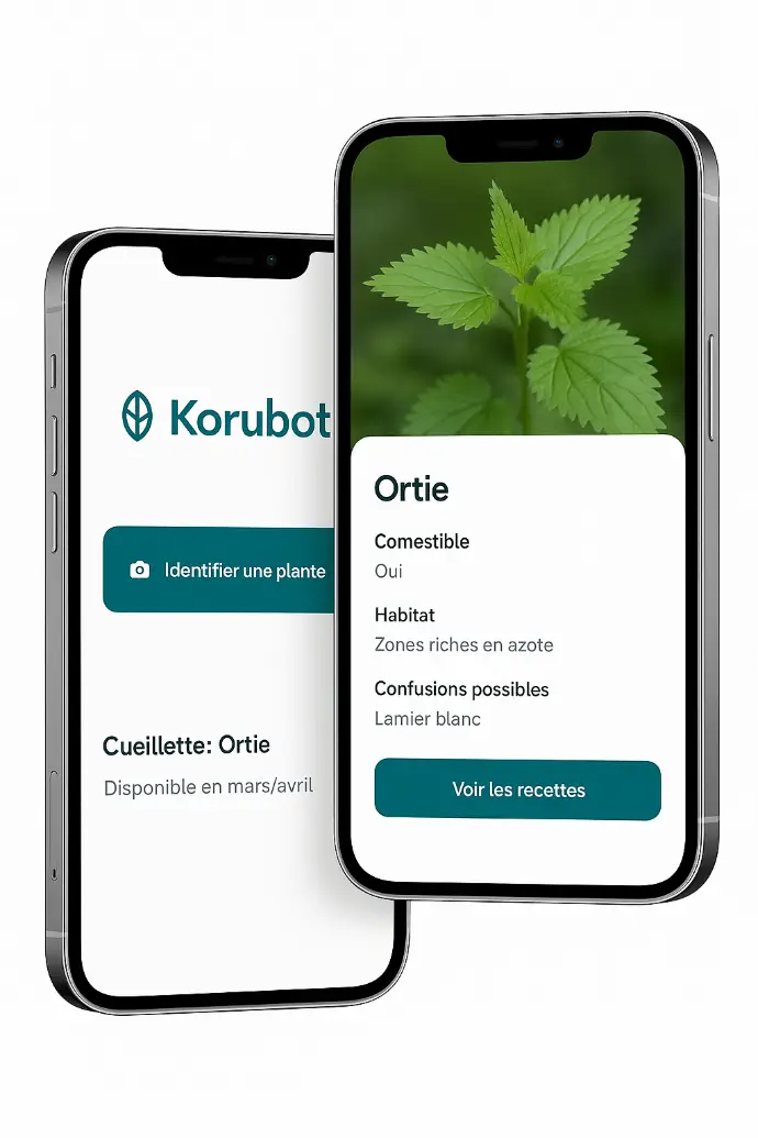Korubot Plants est une application mobile qui vous guide dans l’identification des plantes sauvages comestibles et vous propose des recettes adaptées, du débutant au cueilleur expérimenté.